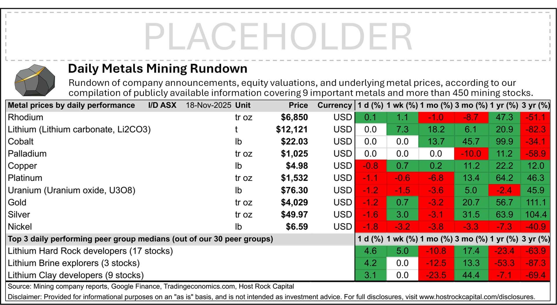 Daily Metals Mining Rundown with Peer Table - Premium Edition for 18 Nov 2025 (intraday ASX)