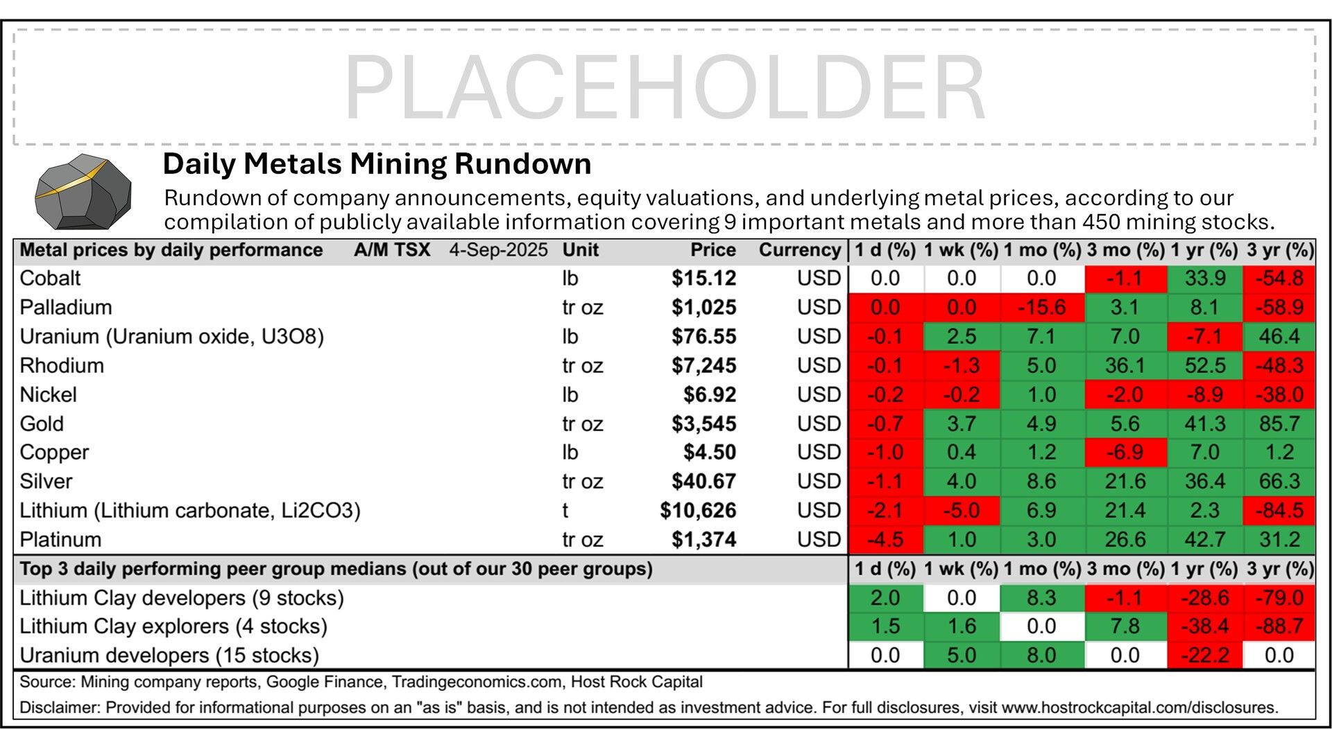 Daily Metals Mining Rundown with Peer Table - Premium Edition for 4 Sept 2025 (after-market TSX)